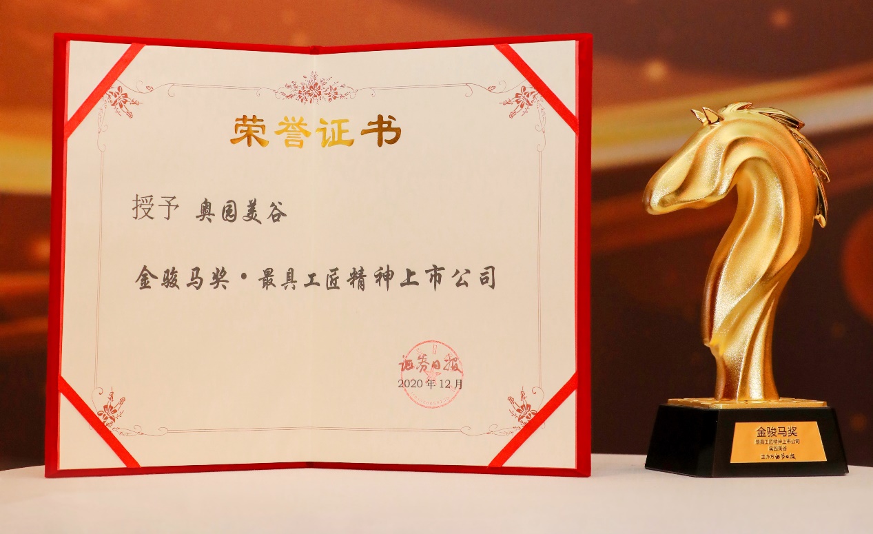 12月11日,由《證券日報》社主辦的“第四屆新時代資本論壇”在北京隆重召開,并揭曉“2020年度中國證券市場金駿馬獎”,奧園美谷憑借不斷提升的公司治理水平、持續改善的經營管理情況、清晰明確的未來發展戰略,榮膺“金駿馬獎·最具工匠精神上市公司”。