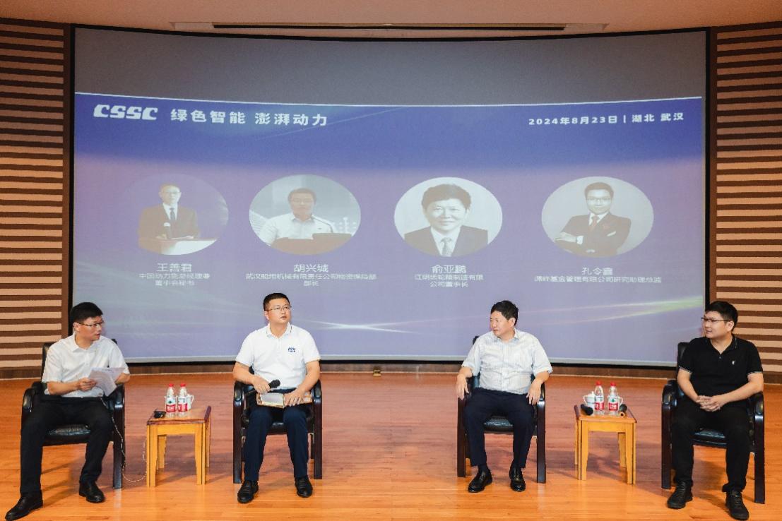 在研討環節,中國動力副總經理兼董事會秘書王善君與武漢船機物資保障部部長胡興城,江陰齒輪箱有限公司董事長俞亞鵬,源峰基金管理有限公司研究助理總監孔令鑫圍繞“共建責任供應鏈”進行了充分的交流。