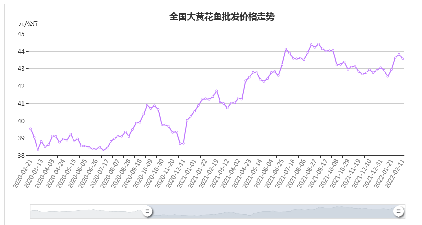 全國大黃花魚批發價格尚處于高位(國家商務部數據中心)