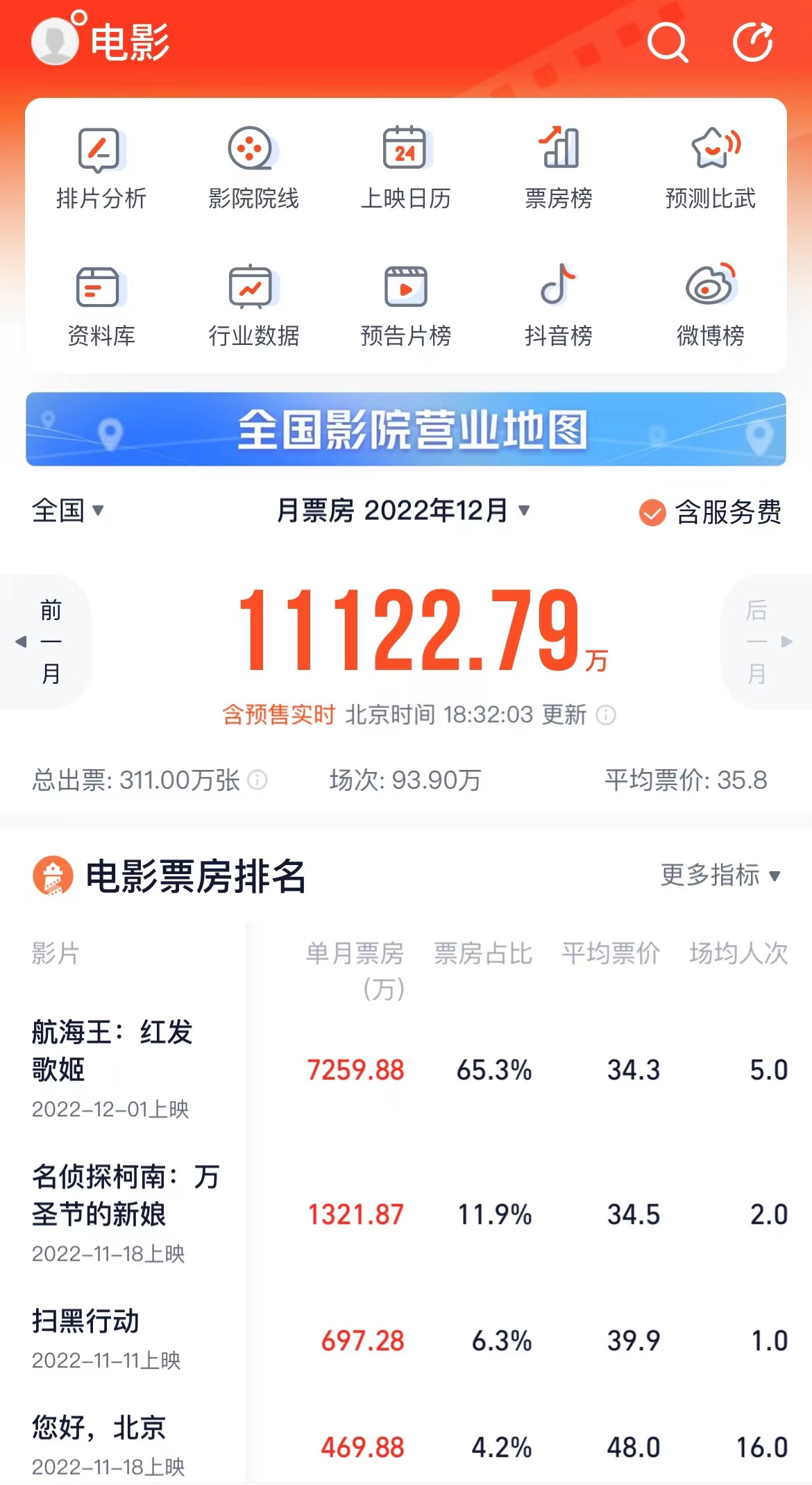 其中,《航海王:紅發(fā)歌姬》扛起票房大旗,12月1日上映至今,票房已經(jīng)突破7000萬元。