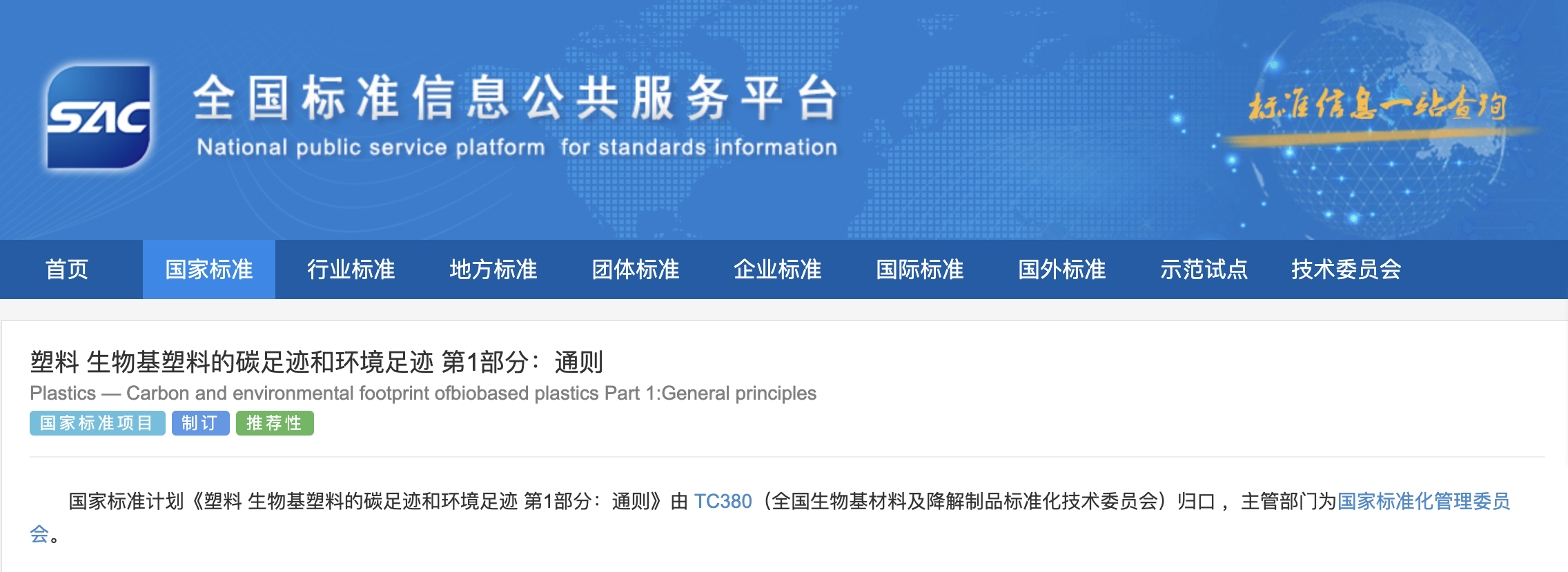據(jù)全國(guó)標(biāo)準(zhǔn)信息公共服務(wù)平臺(tái)官網(wǎng)顯示,國(guó)家標(biāo)準(zhǔn)《塑料生物基塑料的碳足跡和環(huán)境足跡第1部分:通則》自2月1日起施行。