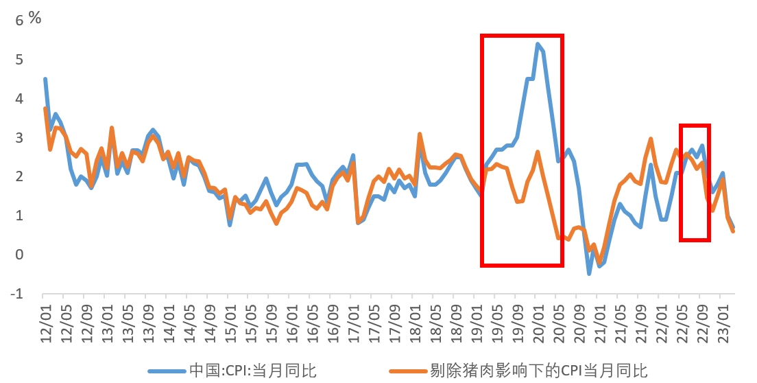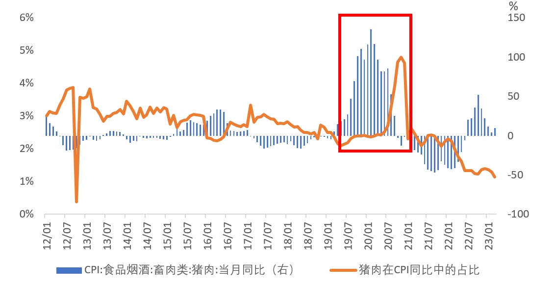 當(dāng)然,若2023年下半年再次出現(xiàn)豬瘟等嚴重黑天鵝事件,則仍有可能導(dǎo)致豬肉供應(yīng)失衡,推動豬價大幅上漲,從而在一定程度上拉動2023年通脹的上行。