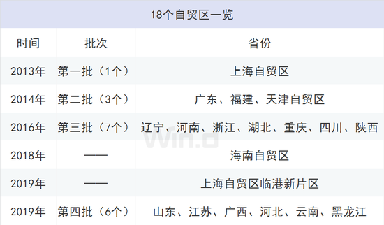 這一次的自貿區,包括6個省、19個城市(片區),面積均約為120平方公里。