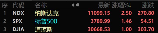 受消息面影響,美股三大指數出現下挫,之后拉升,截至當地時間6月15日收盤,美股三大指數集體收漲,道瓊斯指數漲1%,報30668.53點;標普500指數漲1.46%,報3789.99點;納斯達克指數漲2.5%,報11099.15點。