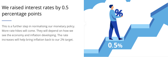 歐洲央行的主要存款利率過去8年一直為負,此次加息主要是為應對歐元區日益嚴重的通脹現象。