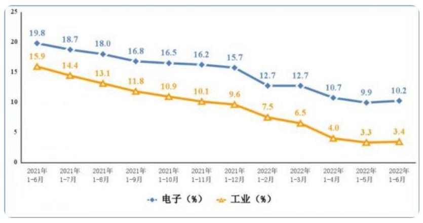 電子信息制造業(yè)和工業(yè)增加值累計(jì)增速(圖片來源:工信部官方微信號)