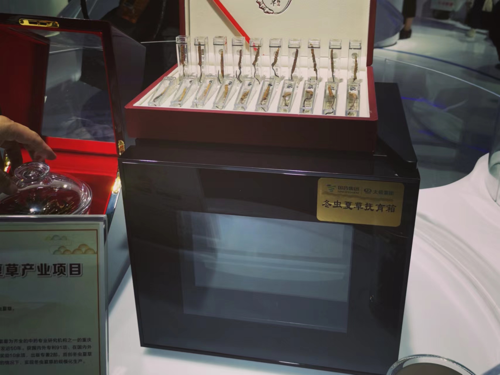 此次參加服貿(mào)會的還有眾多國內(nèi)企業(yè)。在國藥集團(tuán)展臺上,記者被國藥太極的冬蟲夏草撫育箱吸引,據(jù)工作人員介紹,這是開國內(nèi)冬蟲夏草人工繁育研究先河的技術(shù),使用高原土壤在平原地區(qū)用撫育箱人工生產(chǎn)冬蟲夏草。