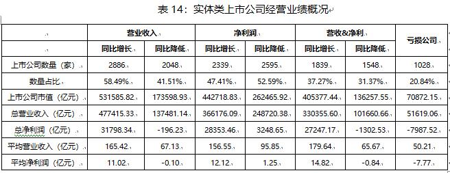 2022年,A股實體類上市公司共有4934家,有2886家公司營業(yè)收入同比增長,占58.49%;有2339家公司凈利潤同比增長,占47.41%;其中,有1839家公司實現(xiàn)營收和凈利潤同步增長,占37.27%。