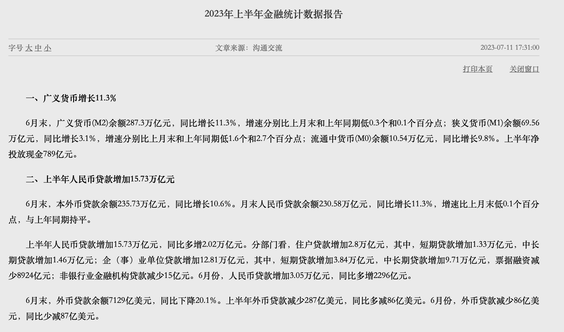 6月份社融增量超出市場預期