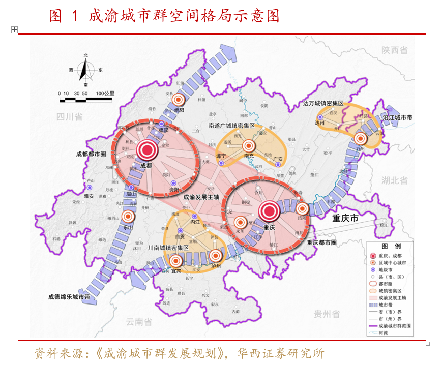 成渝地區雙城經濟圈在國家發展大局中具有獨特、重要的戰略地位,近年川渝兩地已攜手在產業協作、政策協同、項目共建等多個方面取得實質性的進展。依托于其優良的自然稟賦、扎實的產業基礎,以及逐漸活躍的人力、物流等要素優勢,成渝經濟圈將乘勢而上,進一步提升其經濟輻射力和發展帶動力,成為中國經濟高質量增長的“第四極”。