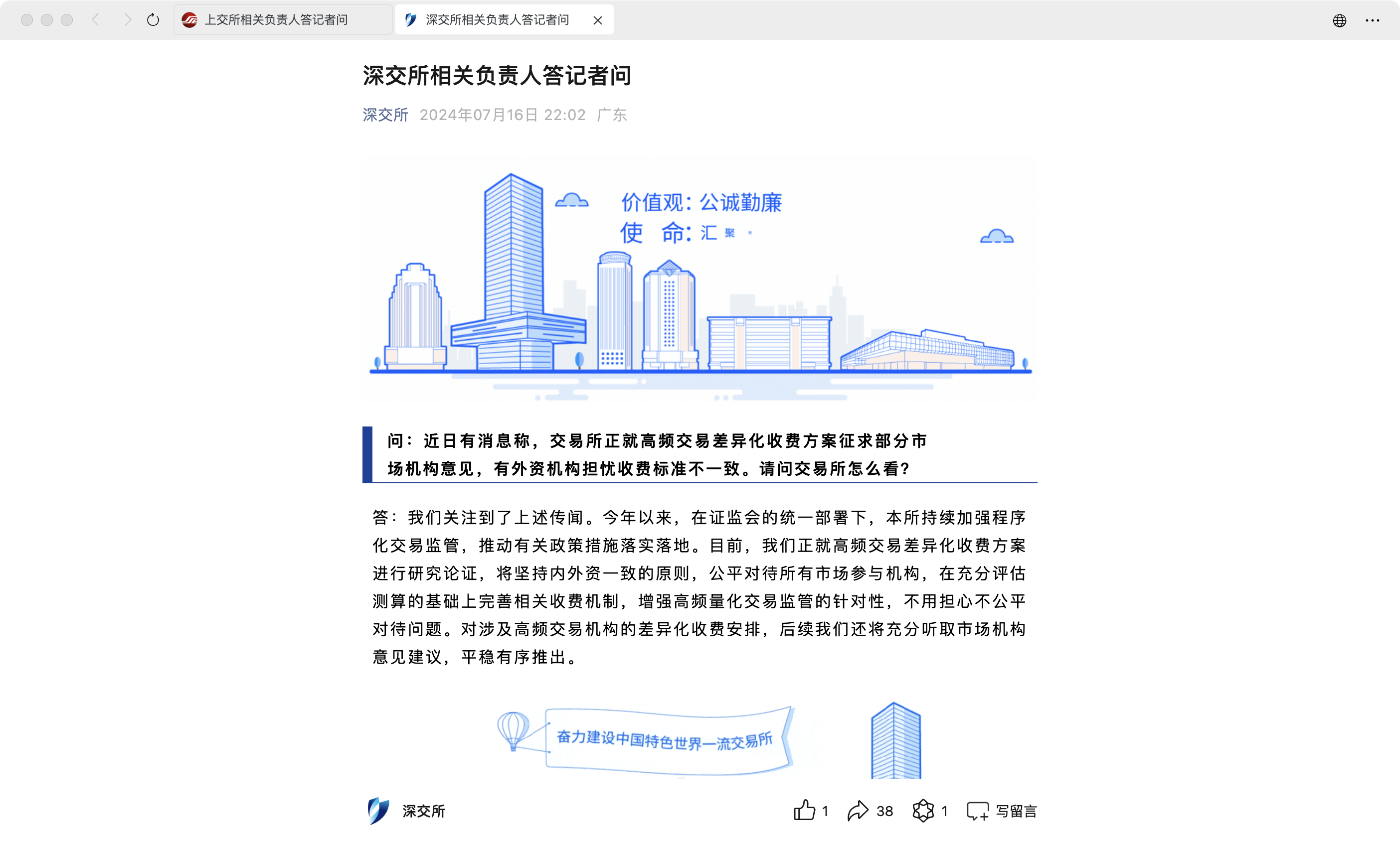 對涉及高頻交易機(jī)構(gòu)的差異化收費(fèi)安排,滬深交易所表示,后續(xù)還將充分聽取市場機(jī)構(gòu)意見建議,平穩(wěn)有序推出。