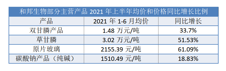 對于2021年上半年經(jīng)營業(yè)績大幅增長的原因,和邦生物表示,從外部環(huán)境來看,主要受益于環(huán)保、2020年度疫情對落后產(chǎn)能的進一步出清以及產(chǎn)能擴張限制,疊加下游需求增長,純堿、玻璃銷售價格大幅上漲。同時還疊加下游農(nóng)業(yè)產(chǎn)業(yè)的需求增長和新作物品種的投放,外加農(nóng)產(chǎn)品價格上漲,農(nóng)戶種植積極性提升等因素的影響,使得草甘膦需求旺盛,價格上漲。從公司內(nèi)部角度來看,和邦生物基于對2021年度產(chǎn)品行情的趨勢判斷并開展系列準(zhǔn)備工作、擬定可供執(zhí)行的生產(chǎn)計劃并實現(xiàn)生產(chǎn)按計劃高產(chǎn)、穩(wěn)定運行,從而保證了銷售的穩(wěn)步提升。公司還稱,通過不斷的產(chǎn)能、技術(shù)挖潛,在2020年度完成了雙甘膦升級優(yōu)化項目,從而提升了產(chǎn)能利用率及成本控制能力,使公司的產(chǎn)品競爭力和盈利水平進一步提高。