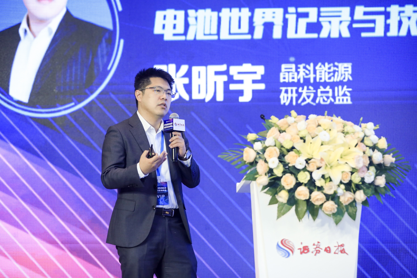 會議現場,晶科能源研發總監張昕宇發表了有關《大尺寸高效N型TOPCon電池世界記錄與技術進展》的主題演講,主要從背景、原理、公司技術和行業發展等角度介紹TOPCon(太陽能電池技術)的發展路徑和未來愿景。