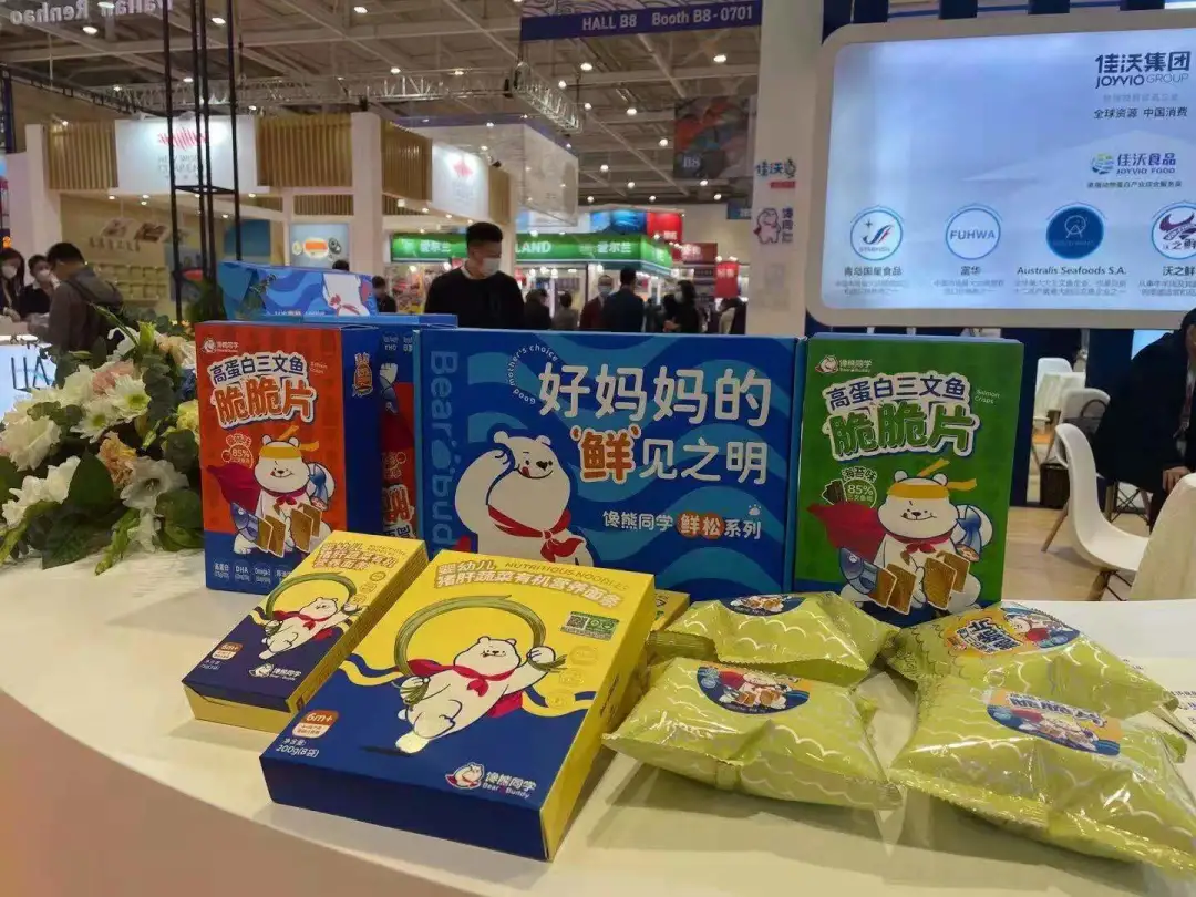 在3R食品方面,佳沃食品針對母嬰客戶群體推出了高營養兒童食品品牌“饞熊同學”,新產品“三文魚鮮松”“三文魚脆脆片”等優質蛋白產品,并在第25屆中國國際漁業博覽會上亮相。吳爽介紹相關情況:“目前,‘饞熊同學’產品已在天貓、京東等電商平臺銷售,獲得市場廣泛認可。”