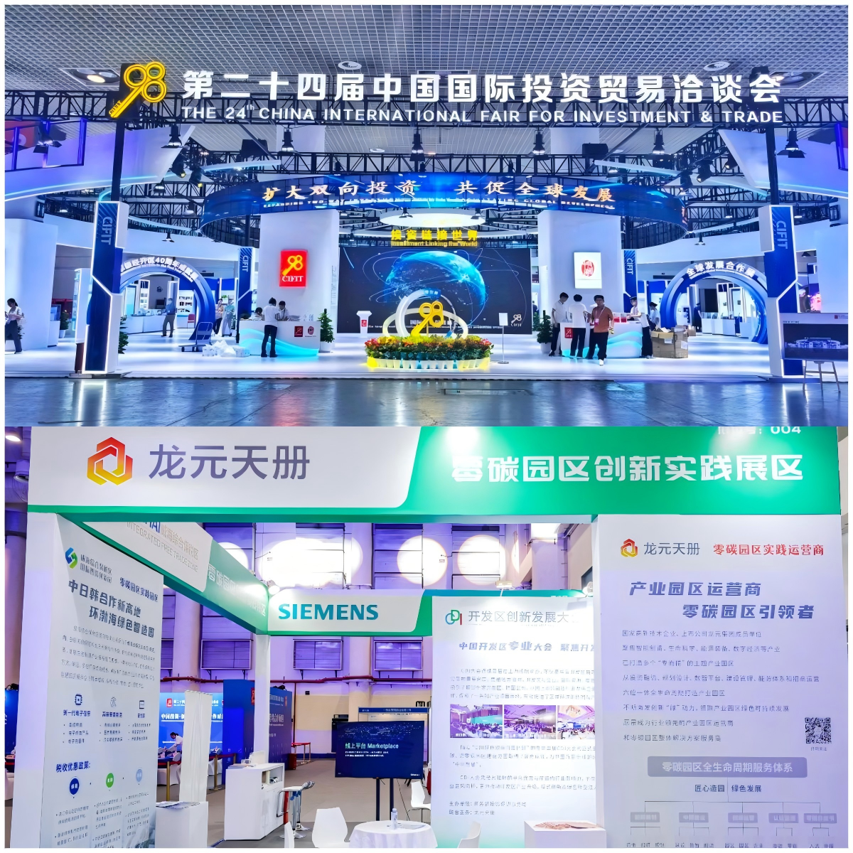 龍元建設集團旗下生態單位龍元天冊作為“CDI綠色雙碳百園計劃”執行組長單位,精彩亮相“零碳園區創新實踐展區”,展示了作為一家高新技術企業,創新產業運營商,全生命周期的綠色雙碳園區整體解決方案和合作模式。展區內,咨詢臺前人頭攢動,來自各行各業的參觀者絡繹不絕,紛紛駐足,就零碳園區解決方案及合作模式等機遇展開熱烈交流。龍元天冊憑借其領先的園區打造能力、創新的發展理念以及豐富的產業資源,吸引了眾多國內外企業的關注與認可。