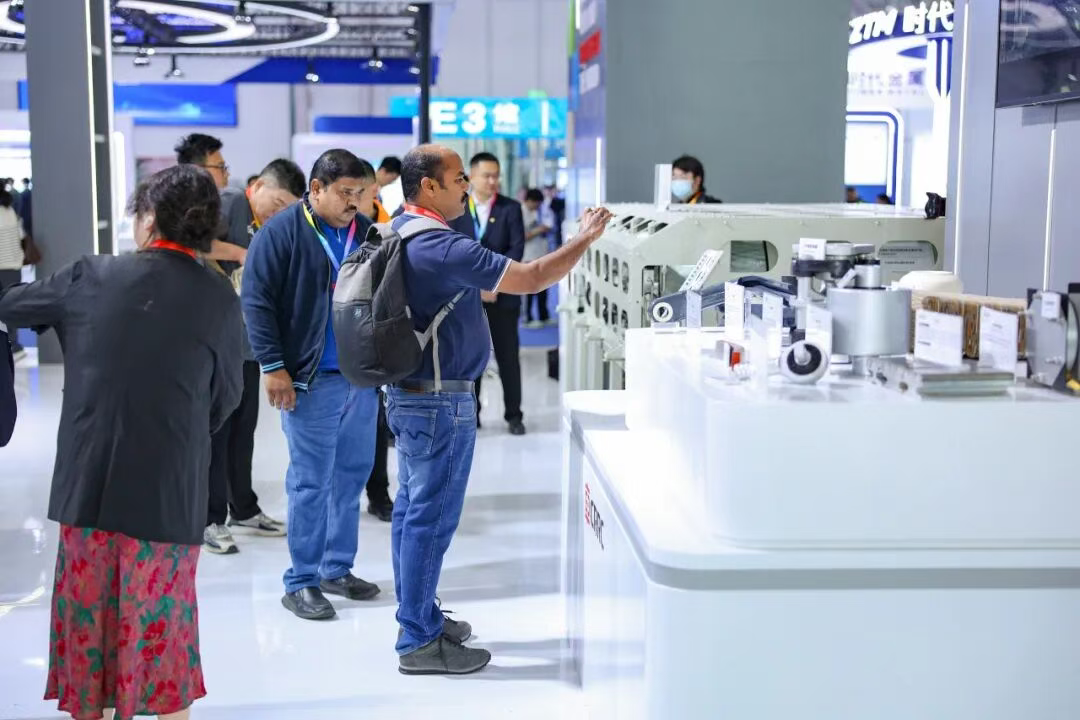 外國客商在時代新材的氫能產品前駐足觀看 時代新材供圖
