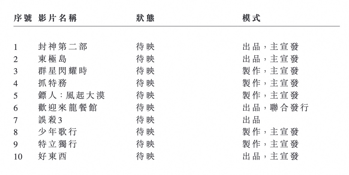 報告期內,阿里影業共儲備電影70部,其中,投資待映項目35部,自主研發與合制項目35部。