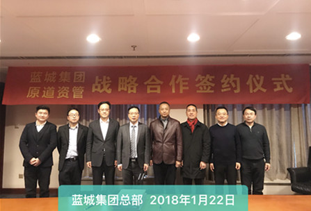 2018年1月22日下午,原道資產與藍城集團在杭州正式簽署戰略合作協議,宣布結成戰略合作伙伴關系。原道資產執行合伙人楊稚波、李開先、張志峰,藍城集團總裁許峰、藍城偉業副總經理黃超共同出席了簽約儀式。