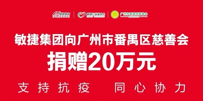 6月3日,敏捷集團(tuán)迅速行動,決定向廣州市慈善會、廣州市番禺區(qū)慈善會累計(jì)捐資80萬元,主要用于采購防護(hù)服、護(hù)目鏡、一次性手套、口罩等短缺醫(yī)療物資及護(hù)欄、室內(nèi)隔離帶、等候椅等后勤保障物資,以及對一線醫(yī)護(hù)人員的支援和幫助,為奮戰(zhàn)在一線的各戰(zhàn)線工作人員加油助力。