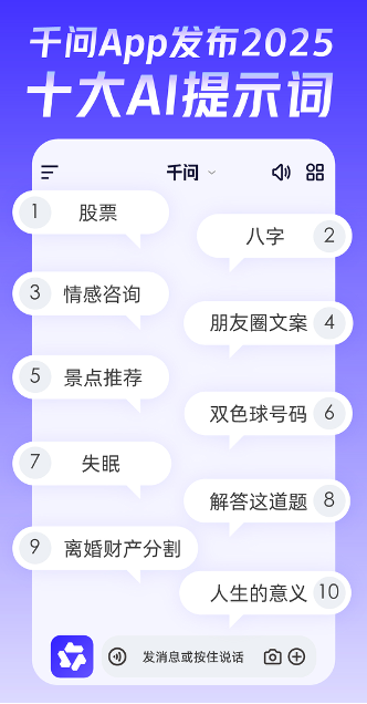 本報(bào)訊 (記者梁傲男)12月22日,千問(wèn)App發(fā)布“2025十大AI提示詞”榜單,揭示了2025年人們使用AI的十大高頻場(chǎng)景,“股票”高居首位,遠(yuǎn)超其他工具性、生活類(lèi)或情感類(lèi)話題。這一結(jié)果不僅折射出人們對(duì)資本市場(chǎng)的高度關(guān)注,也標(biāo)志著AI正深度融入個(gè)人的投資決策。