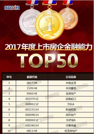 《2017上市房企金融能力TOP50》榜單顯示,來自滬深交易所的房地產上市公司(含同時在香港上市的公司)共19家,來自港交所的房地產上市公司共31家,其中中國金茂、華潤置地、龍湖地產位居三強。這也意味著,龍湖系上市民營房企金融能力第一。