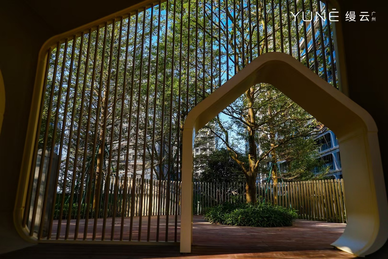 “折疊園林”是縵云廣州一大亮點。在“折疊園林”體系中,?叢林探索樂園?是一個讓孩子更盡興、更多元、更安全的童趣場域:為低齡兒童設置專屬游樂區,在林中樹屋與沙坑洞穴里隨心冒險,到認知花園了解自然百科,家長還可通過手機App或管家隨時知曉孩子的活動情況。