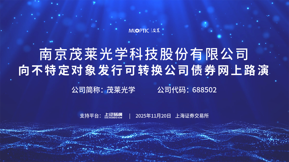 歡迎光臨證券日報網。茂萊光學向不特定對象發行可轉換公司債券網上路演于2025年11月20日(星期四)15:00--16:00舉行。[詳細]