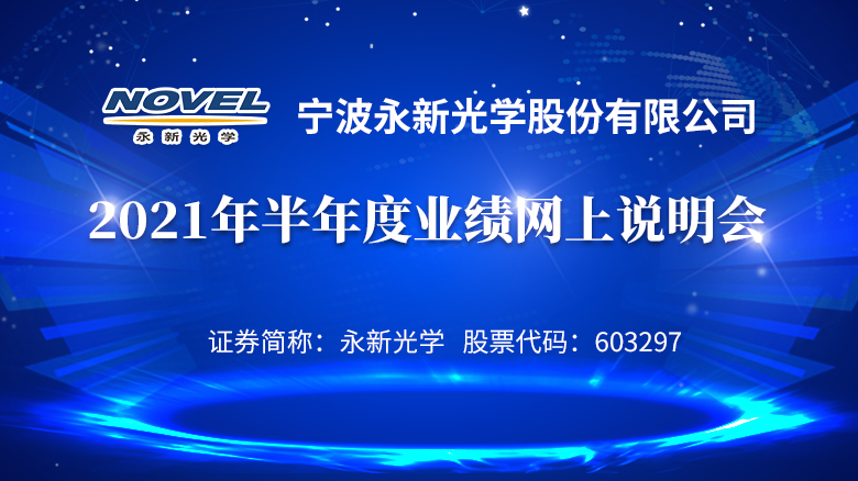 寧波永新光學(xué)股份有限公司2021年半年度業(yè)績網(wǎng)上說明會將于2021 年 9 月 2 日(周四)15:00-17:00,以網(wǎng)絡(luò)遠(yuǎn)程文字交流的形式在本網(wǎng)舉行。[詳細(xì)]