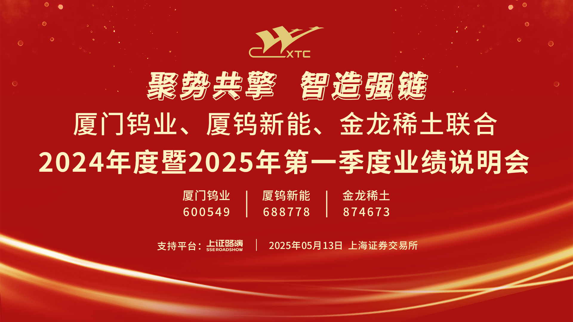 歡迎光臨證券日報(bào)網(wǎng)。廈門鎢業(yè)、廈鎢新能、金龍稀土聯(lián)合 2024年度暨2025年第一季度業(yè)績說明會(huì)將于2025-05-13(星期二)10:00 ~ 11:30舉行。[詳細(xì)]