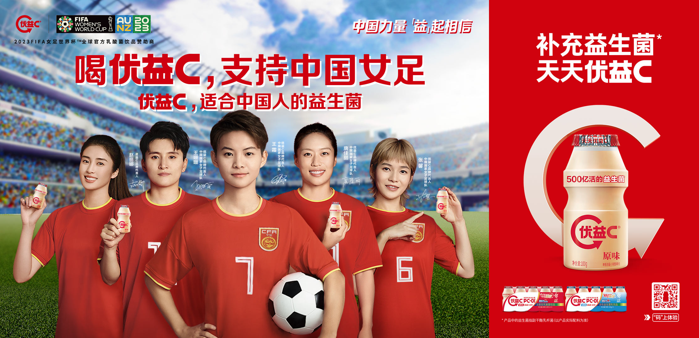 有人說,你永遠(yuǎn)可以相信中國女足。32年來,中國女足歷經(jīng)七屆世界杯,既有創(chuàng)造歷史的輝煌,也有遭遇失敗的灰暗,但中國女足一直展現(xiàn)出一種“永不言棄、永不放棄、敢于拼搏”的精神,不斷前行創(chuàng)造偉大。這種對專注與持之以恒積淀自我力量的共同追求,同樣作為國民IP/品牌的地位,讓優(yōu)益C與中國女足在去年五月達(dá)成合作——蒙牛優(yōu)益C成為中國足協(xié)中國之隊官方益生菌飲品贊助商,中國女足隊員出任優(yōu)益C代言人。