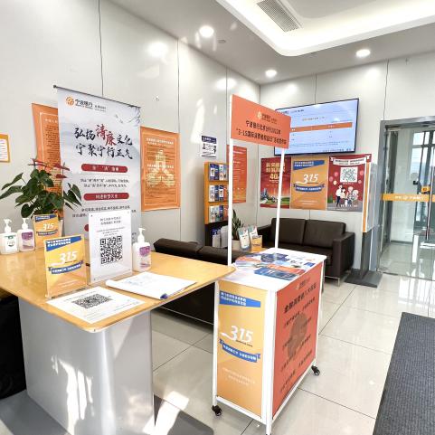 為充分發揮營業網點的主陣地作用,寧波銀行北京分行各營業網點均設置金融知識普及宣傳服務專區,擺放宣傳折頁和金融知識讀本,向公眾普及金融知識。同時在廳堂張貼宣傳海報,懸掛活動主題橫幅,擺放“清廉文化”易拉寶,利用廳堂電子屏、自助機具等各類多媒體資源全天候滾動播放宣傳視頻、宣傳海報、活動口號及消費者八大權益。在客戶等候辦理業務間隙,廳堂工作人員主動為客戶發放宣傳資料并結合客戶實際業務需求開展有針對性的交流和講解,讓來行辦理業務的客戶都能帶走一點兒金融知識,提升對金融知識了解的廣度和深度。