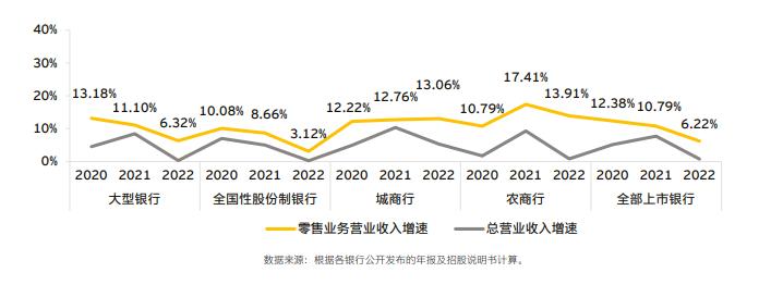 零售業務營業收入增速情況(圖片來源:《中國上市銀行2022年回顧及未來展望》)