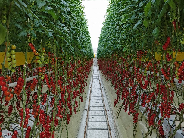 記者實(shí)地走訪了凱盛農(nóng)業(yè)旗下的農(nóng)業(yè)大棚,先進(jìn)的半封閉型連棟玻璃溫室、無土栽培和生長(zhǎng)環(huán)境控制、農(nóng)業(yè)云大數(shù)據(jù)管理、機(jī)器人全自動(dòng)包裝系統(tǒng)等一應(yīng)俱全,園區(qū)的主打農(nóng)業(yè)產(chǎn)品是高品質(zhì)的水果番茄。