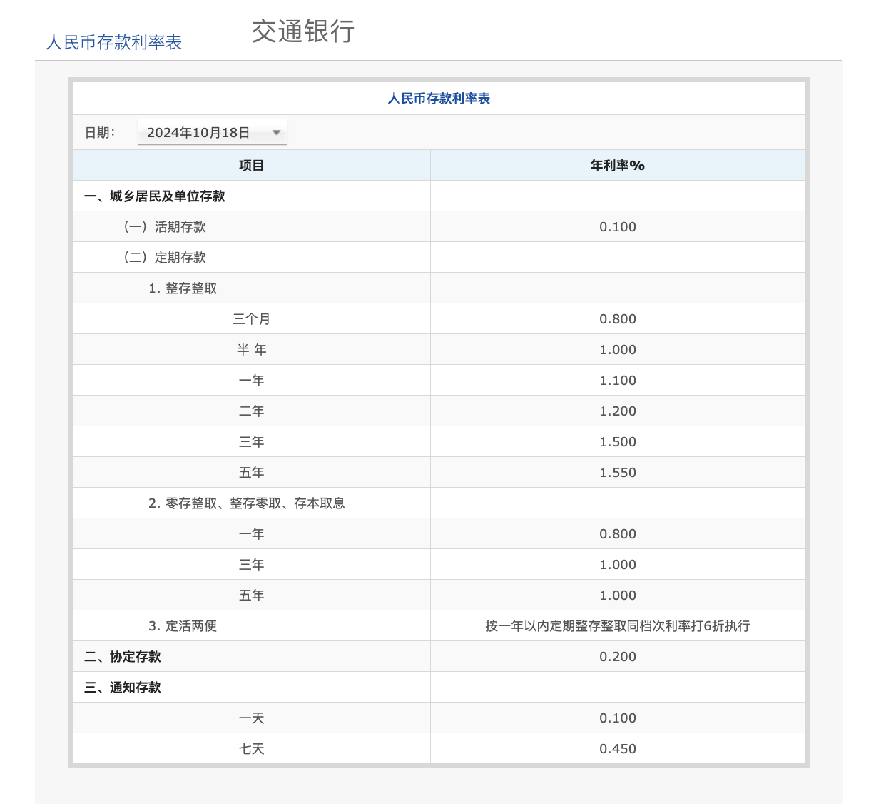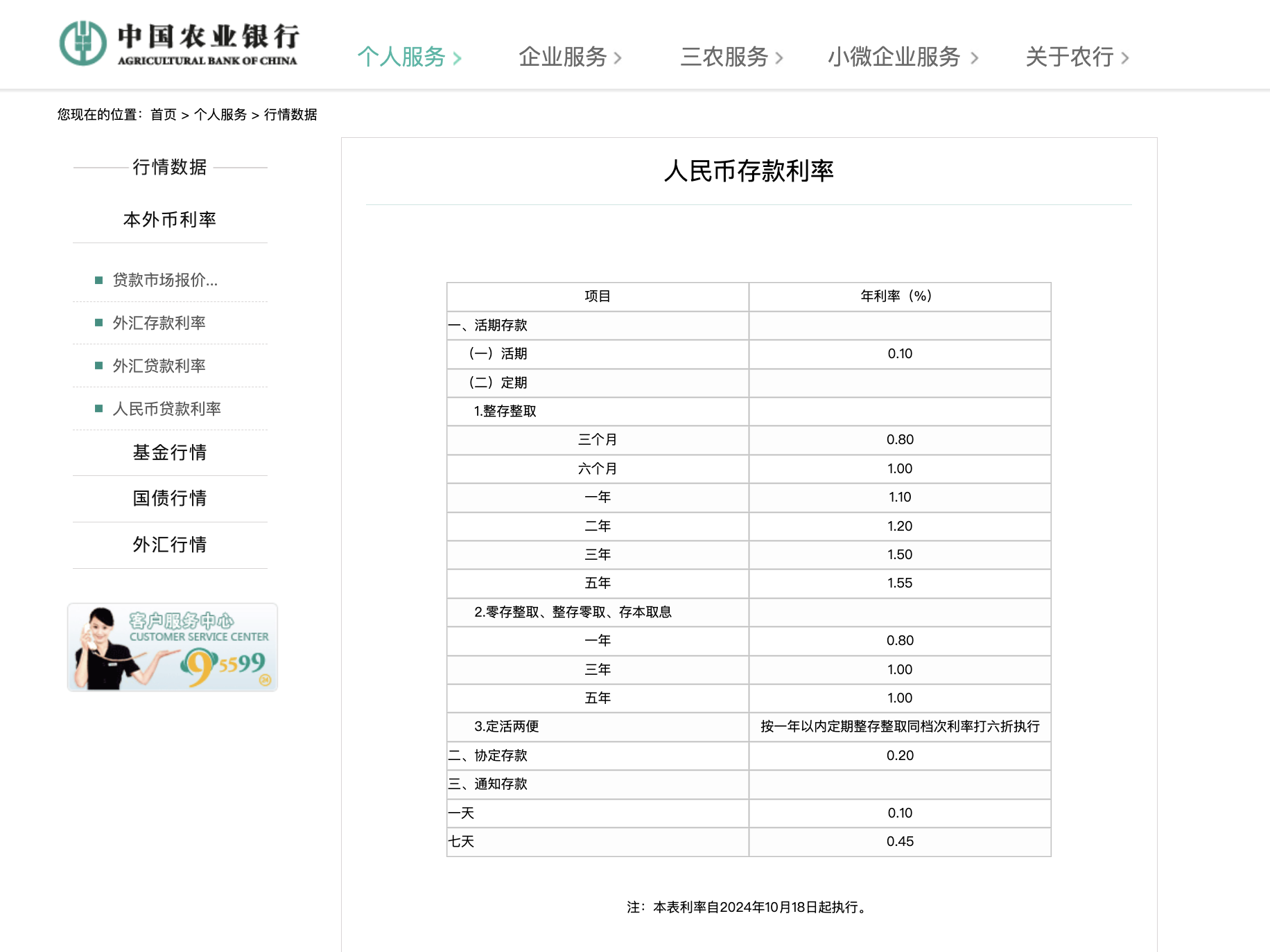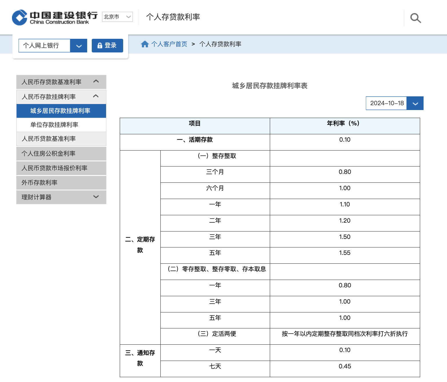 10月18日,工商銀行、農業銀行、中國銀行、建設銀行、交通銀行、郵儲銀行等六家國有大型商業銀行均對存款掛牌利率進行調整。
