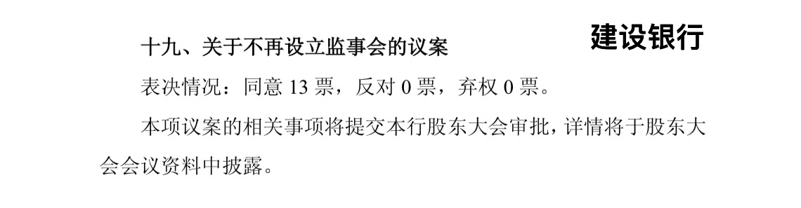 公告顯示,五家銀行董事會均通過了不再設立監事會的相關議案,相關議案尚需提交銀行股東大會審議通過。