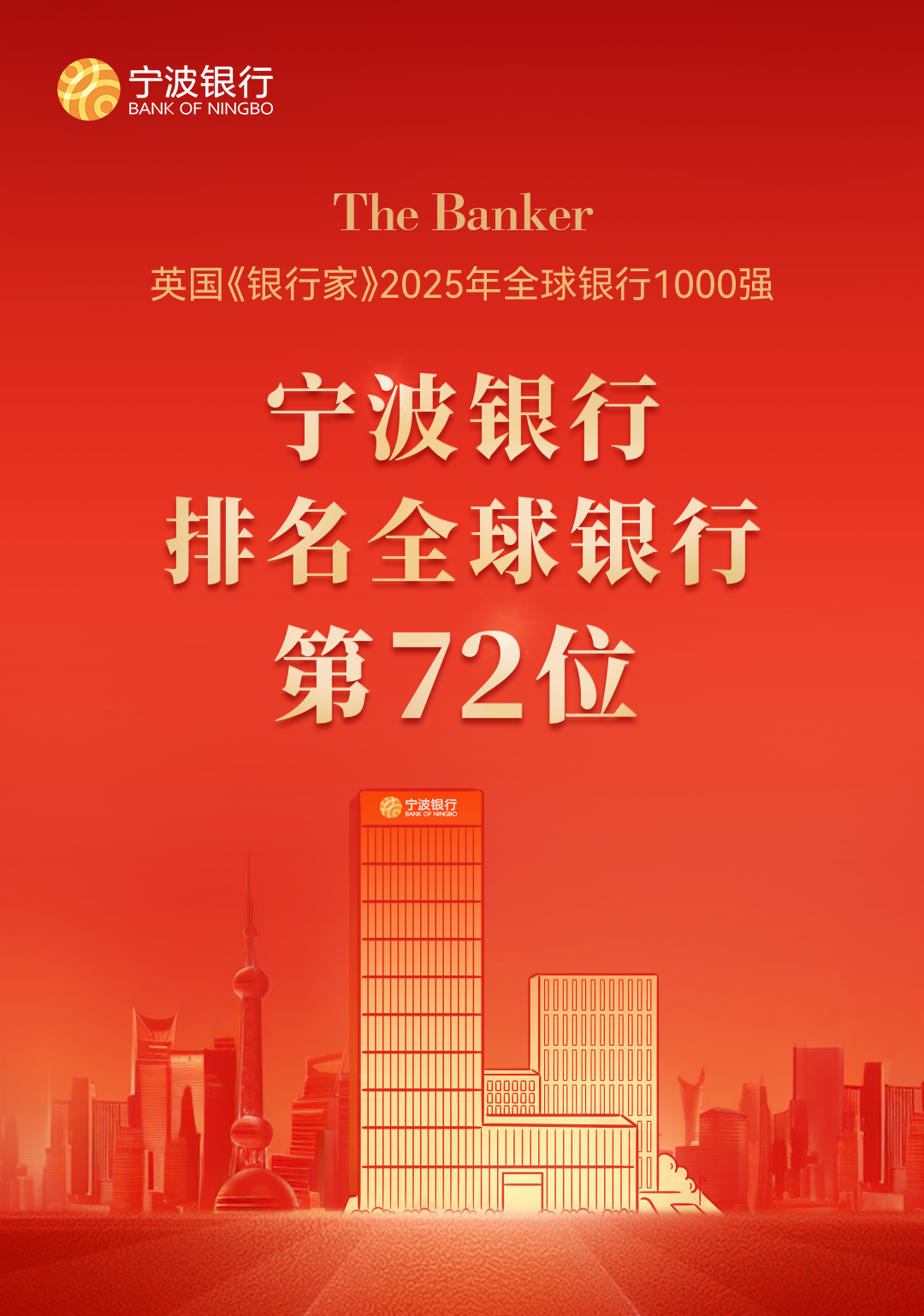 7月2日,英國《銀行家》雜志(TheBanker)發布2025年“全球銀行1000強”榜單,寧波銀行股份有限公司(股票簡稱:寧波銀行股票代碼:002142)以一級資本315.68億美元排名第72位,較上一年度上升8位,在全球百強銀行中的位次穩步向前。