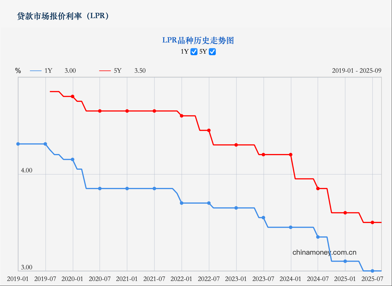 9月22日,中國人民銀行授權全國銀行間同業拆借中心公布,2025年9月22日貸款市場報價利率(LPR)為:1年期LPR為3.0%,5年期以上LPR為3.5%。兩個期限品種LPR較上月均維持不變。