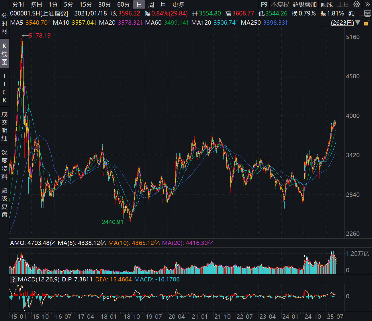 Wind資訊數(shù)據(jù)顯示,10月28日,上證指數(shù)早盤突破4000點整數(shù)關(guān)口,為2015年8月份以來首次,年內(nèi)累計漲幅超過19%。截至午間收盤,上證指數(shù)報4005.44點,漲幅為0.21%,超3000只股票上漲。