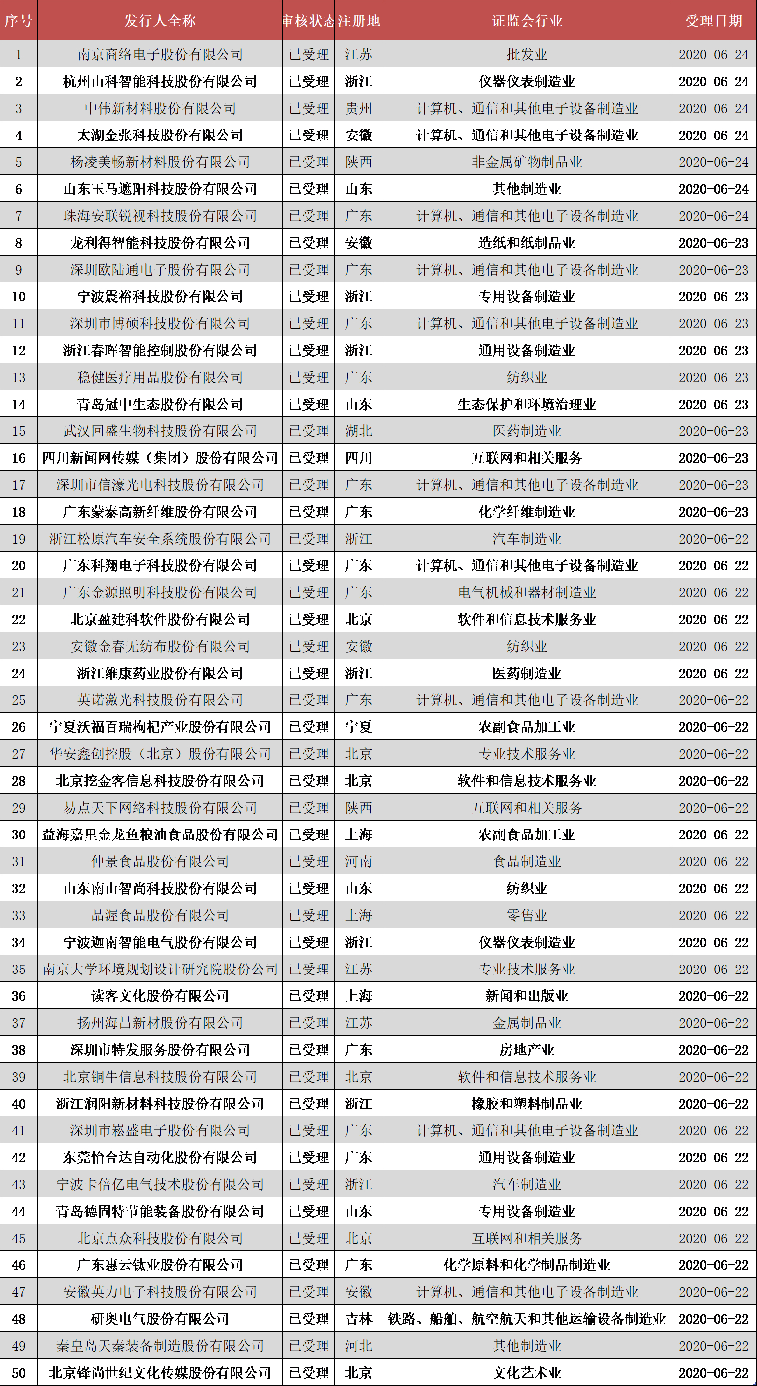 近日,創(chuàng)業(yè)板注冊制改革第三批7家受理企業(yè)名單出爐。至此,創(chuàng)業(yè)板試點(diǎn)注冊制受理企業(yè)已有50家。