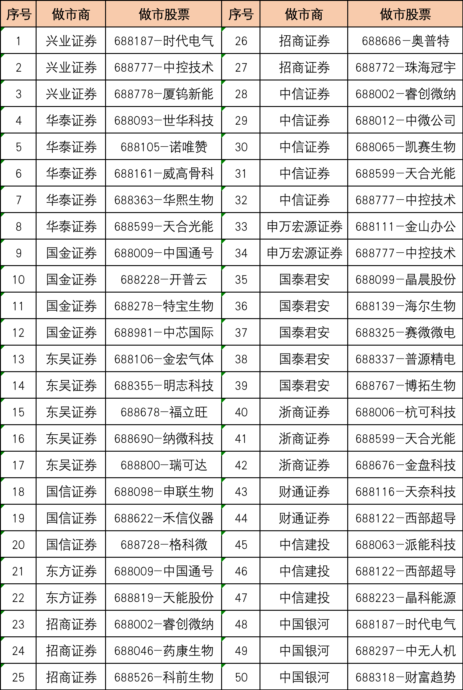 截至目前,14家券商獲得科創板股票做市交易資格。上交所官網顯示,14家做市商共發布了50個做市交易股票公告,合計涉及42只科創板股票。