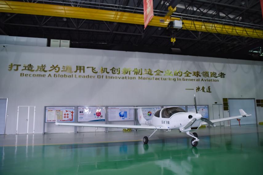 萬豐奧威工作人員向投資者介紹公司的通航飛機