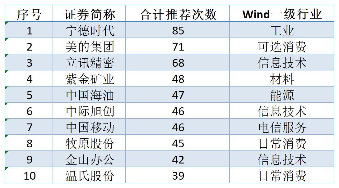 2024年合計被推薦次數(shù)前十金股 制圖/周尚伃于宏
