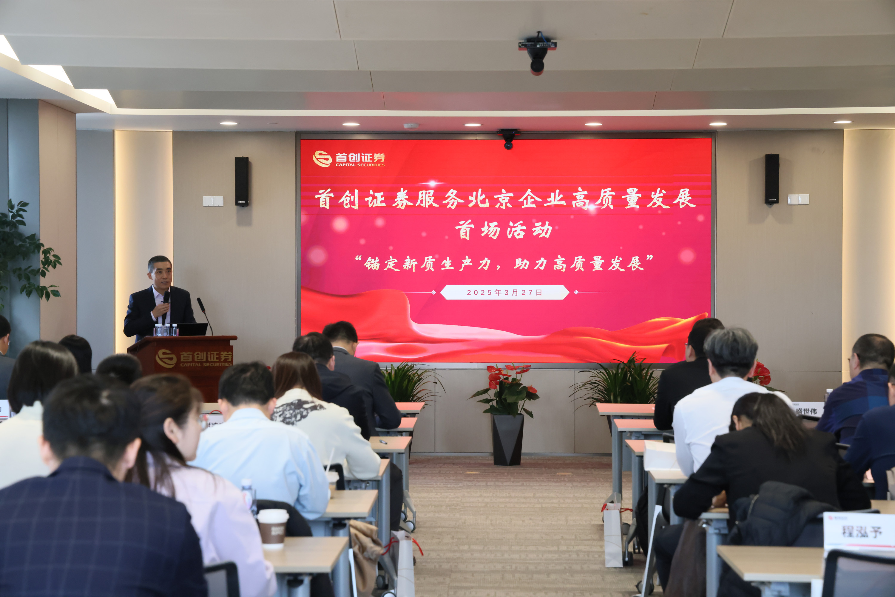 本報訊 (記者李喬宇)2025年3月27日,由北京上市公司協會指導、首創證券主辦的“首創證券服務北京企業高質量發展”首期活動圓滿落幕。本期活動以“錨定新質生產力 助力高質量發展”為主題,就企業高質量發展的創新路徑深入探討與交流。首創證券黨委書記、董事、總經理張濤,首創證券副總經理方杰,與60余名上市公司董秘、證券代表及相關行業專家現場出席活動。