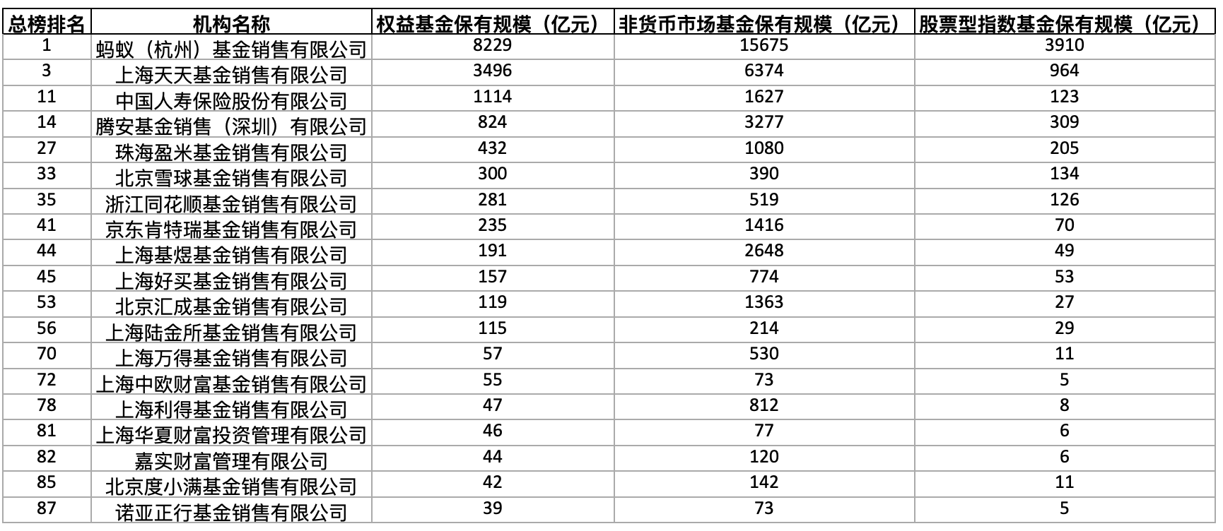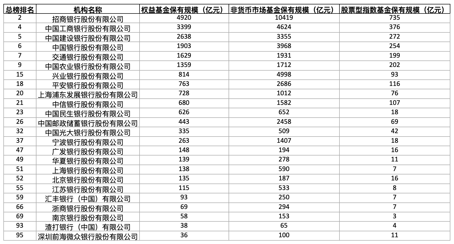 “股票型指數基金保有規模”領域,總榜前十名券商占據了7席。中信證券持續保持領先地位,保有規模為1223億元;華泰證券位居第二,保有規模為1150億元;國泰海通、招商證券、中國銀河、廣發證券的保有規模分別為757億元、659億元、563億元、509億元;東方財富證券保有規模達474億元。