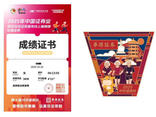 “跑完3公里既能抽獎(jiǎng),又能學(xué)習(xí)防非知識(shí),這種形式太接地氣了!”2025年10月21日至11月10日,在中國(guó)證監(jiān)會(huì)市場(chǎng)監(jiān)管二司、中國(guó)證券業(yè)協(xié)會(huì)、中國(guó)田徑協(xié)會(huì)等單位指導(dǎo)下,華源證券成功舉辦“跑遍中國(guó)·2025年中國(guó)證券業(yè)防范非法證券宣傳健康跑·華源證券站”公益活動(dòng)。活動(dòng)以“警惕‘股市黑嘴’,遠(yuǎn)離非法薦股”為核心主題,采用線上賽事模式,覆蓋全國(guó)31個(gè)省市自治區(qū)、293個(gè)城市,1.2萬(wàn)名跑者完成賽程,紛紛點(diǎn)贊這種“身體與財(cái)富雙重健康”的公益形式。