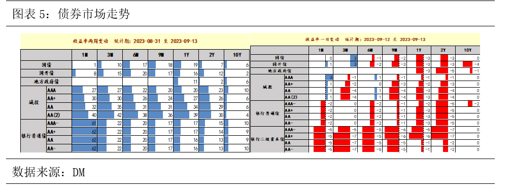 9月份上半月,受到權益政策和地產政策的影響,債券市場有所調整,收益率有所上升,但近兩天債券市場恢復火熱,且近期城投債二級市場保持上漲趨勢,股債蹺蹺板對二級影響較小。其中,江蘇、山東、湖北、天津等地的好轉較為關注,這些地區存在一定投資標的,二級的穩定反映投資者對這些地方的信心仍較好,后續預期仍保持較好的狀態。此外,關注重慶、云南、四川的轉好,尤其是近期特殊融資券等化債方案存在落地的可能,關注這些地區的投資機會。