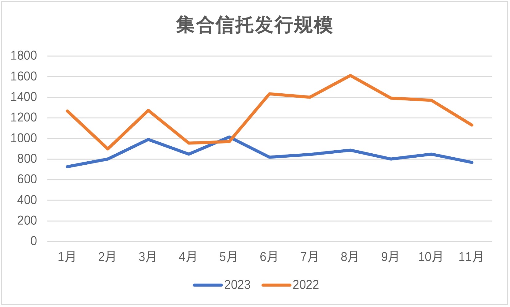 年內數據來看,2023年上半年,集合信托產品發行數量整體高于去年同期,6月份以來,各月份集合信托產品發行數量較去年同比基本持平。整體來看,2023年集合信托產品發行數量整體呈現穩中有升的態勢。