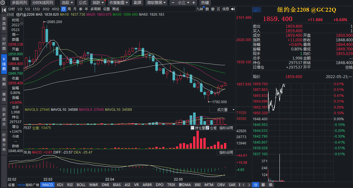 銀河期貨貴金屬研究員萬一菁認為:“首先,目前國際地緣政治問題仍然較多,且美聯儲6月份和7月份加息的預期均為50個基點,不如此前75個基點強烈,這給黃金提供了一定支撐。尤其是美元指數回落,也給黃金提供了喘息機會;其次,近期出現猴痘確診病例也令全球避險情緒回升。在多重因素疊加下,貴金屬價格觸底反彈。”