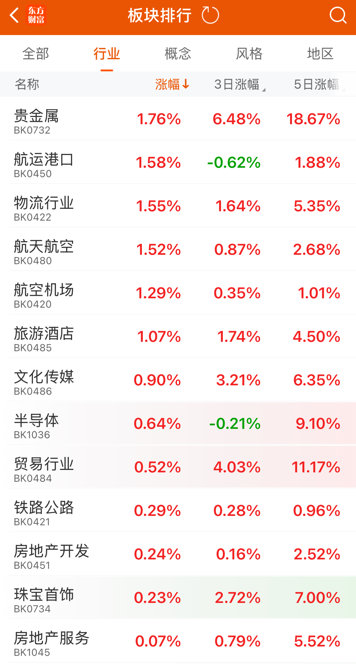 A股市場上,貴金屬板塊也應聲而漲,截至記者發稿時,貴金屬板塊漲幅居首,此外該板塊5日累計漲幅達18.67%,表現強勢。
