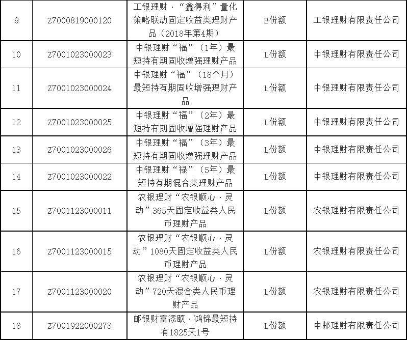 記者注意到,此次新增的11只產品均涉及子份額。其中,工銀理財發布的2只產品子份額名稱為“B份額”,其余9只產品子份額名稱為“L份額”。